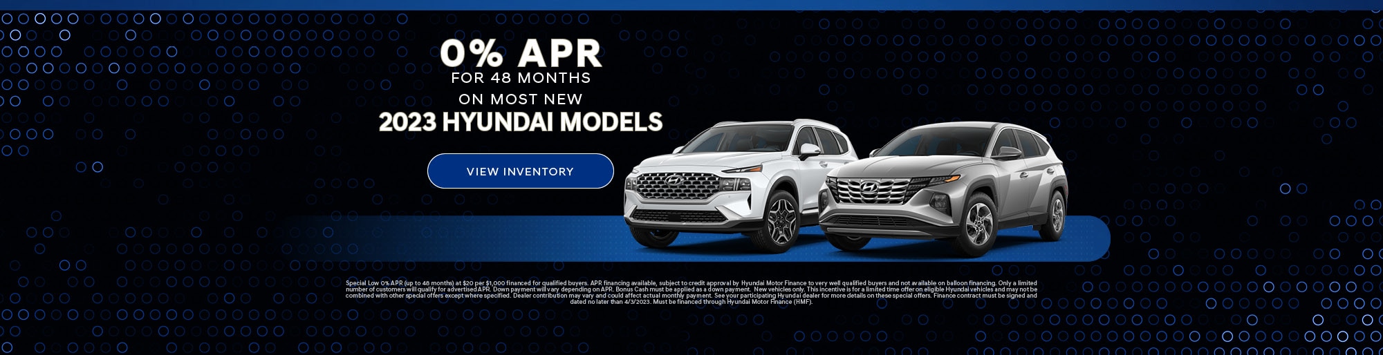 See your participating Hyundai dealer for more details on these special offers. Special limited time annual percentage rate (APR) available to qualified buyers on approved credit through Hyundai Motor Finance. May not be combined with other special offers except where specified. Only a limited number of customers will qualify for advertised APR or lease offer. Not all buyer will qualify.